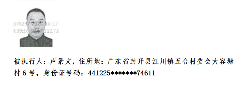 本院执行的申请执行人黎立强与被执行人卢景文借款合同纠纷一案,执行标的为人民币363980元。因被执行人至今未履行生效法律文书确定的义务,为切实维护权利人的合法权益,现依申请执行人黎立强的申请,公告查找被执行人卢景文隐匿、转移的财产线索。